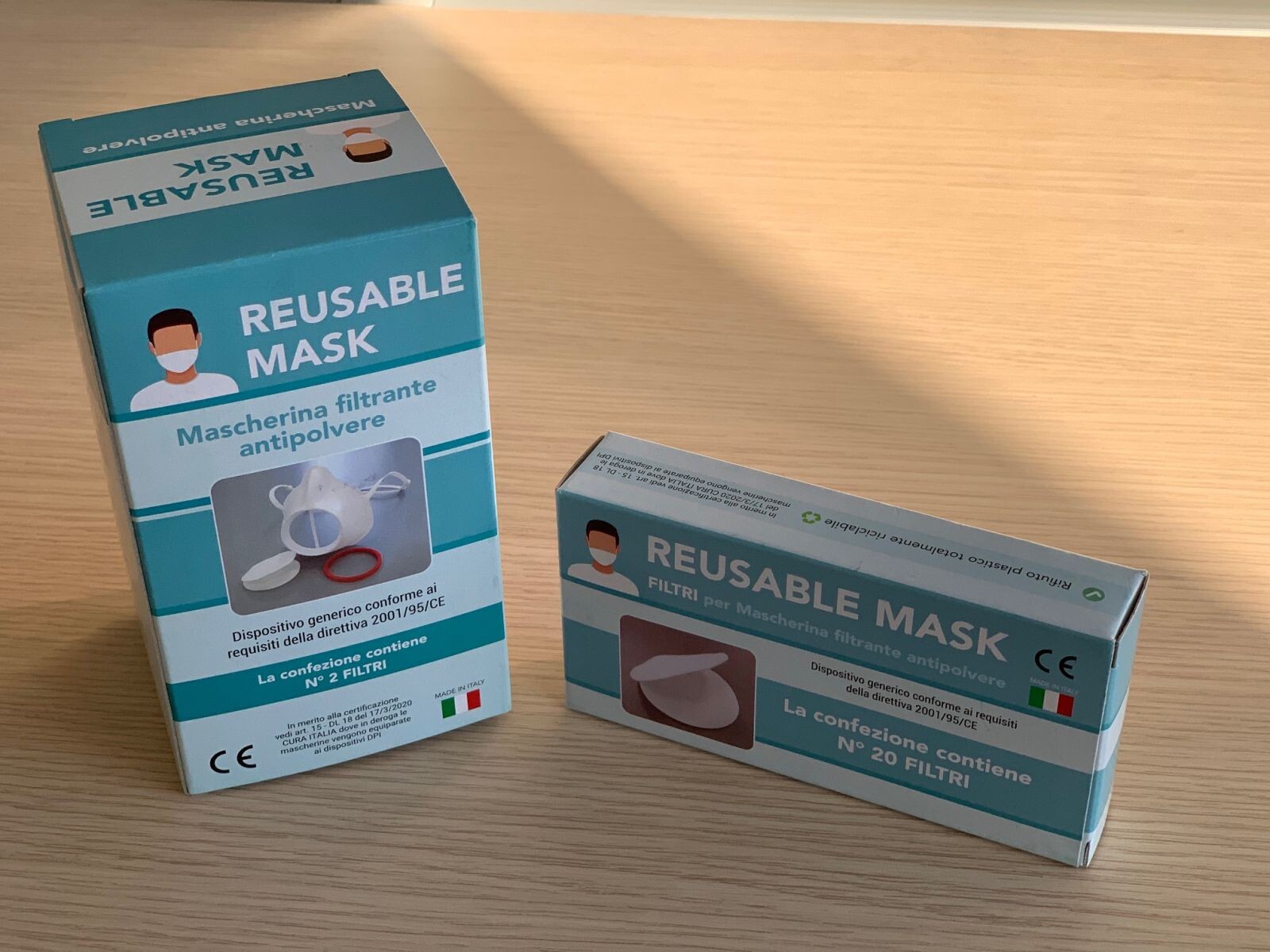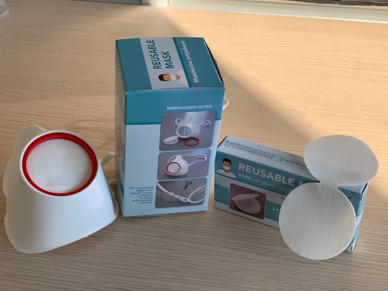 Il KIT mascherina è composto da una mascherina riutilizzabile in materiale anallergico completamente lavabile, sterilizzabile e riciclabile e da un kit di 20 filtri intercambiabili.